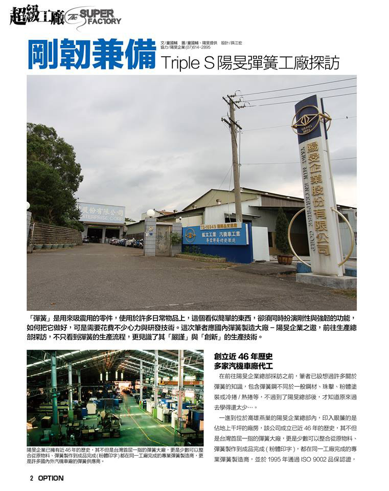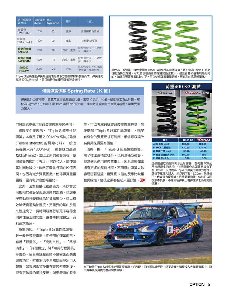 【2018/03/06 】台灣《Carnew/OPTION》,專訪Triple S母廠和為Triple S高性能直捲彈簧做深入的報導!