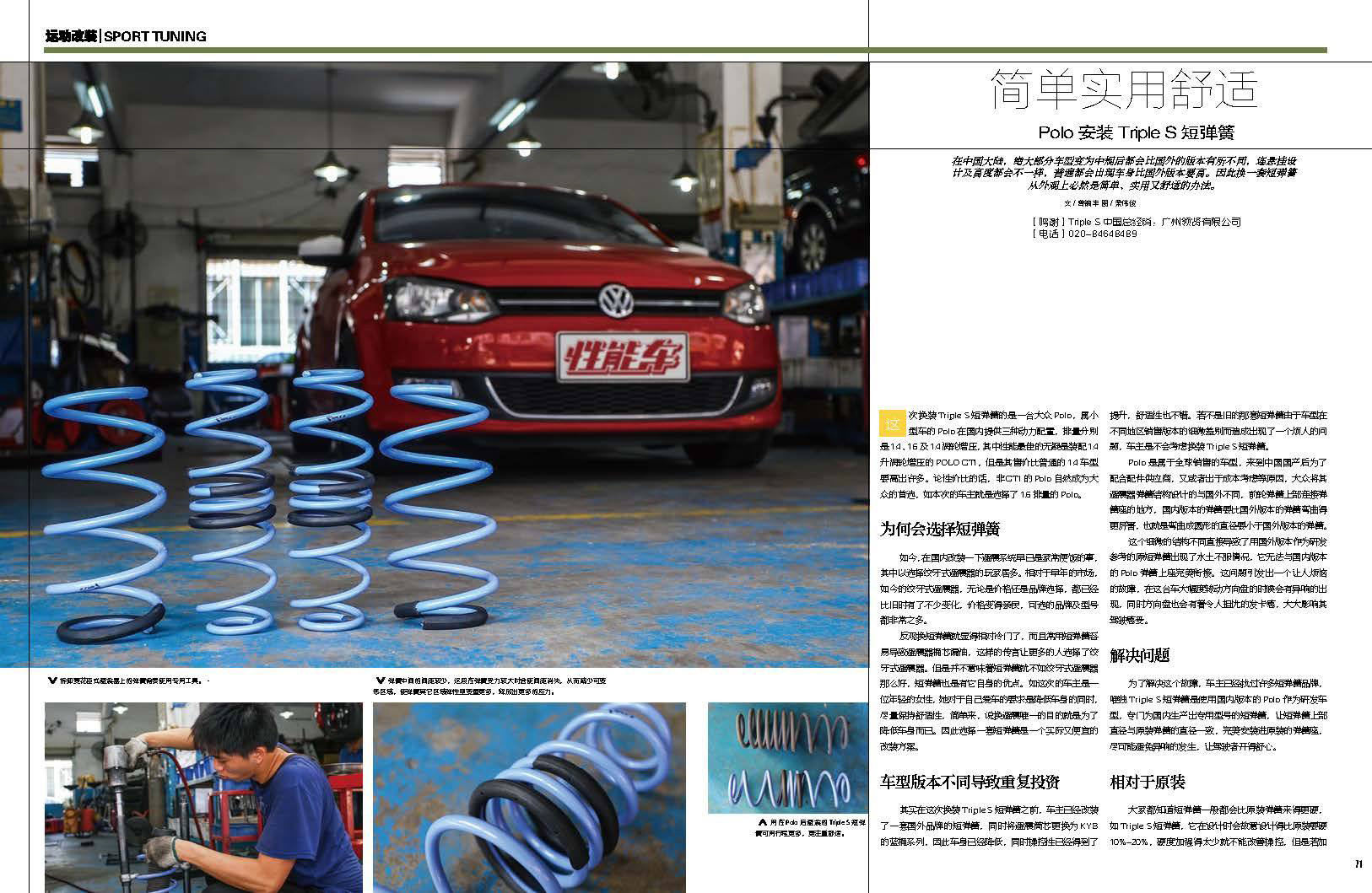 【2016/01/25 】中國《性能車》感謝中國知名改裝媒體性能車2016年1月號對於Triple S 彈簧的相關報導與實際安裝測試POLO的彈簧。