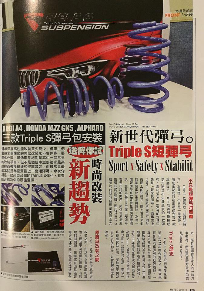【2015/06/25 】香港《Hyper Zpeed》,Triple S 登上香港知名改裝雜誌Hyper Zpeed, 感謝Triple S 港澳總代理--馬霖協力拍攝。