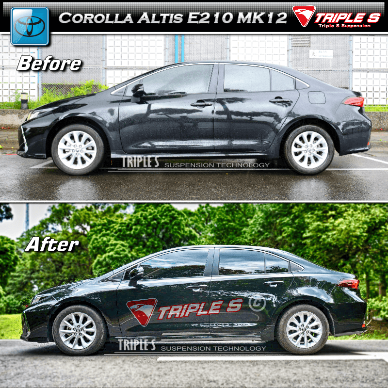 Triple S spring for Latest Toyota Corolla Altis E210 made it's debut. Triple S had added 22% spring rate and lower 2-2.5 cm on average to upgrade the suspension, that let owner and family have more stable and safer driving.